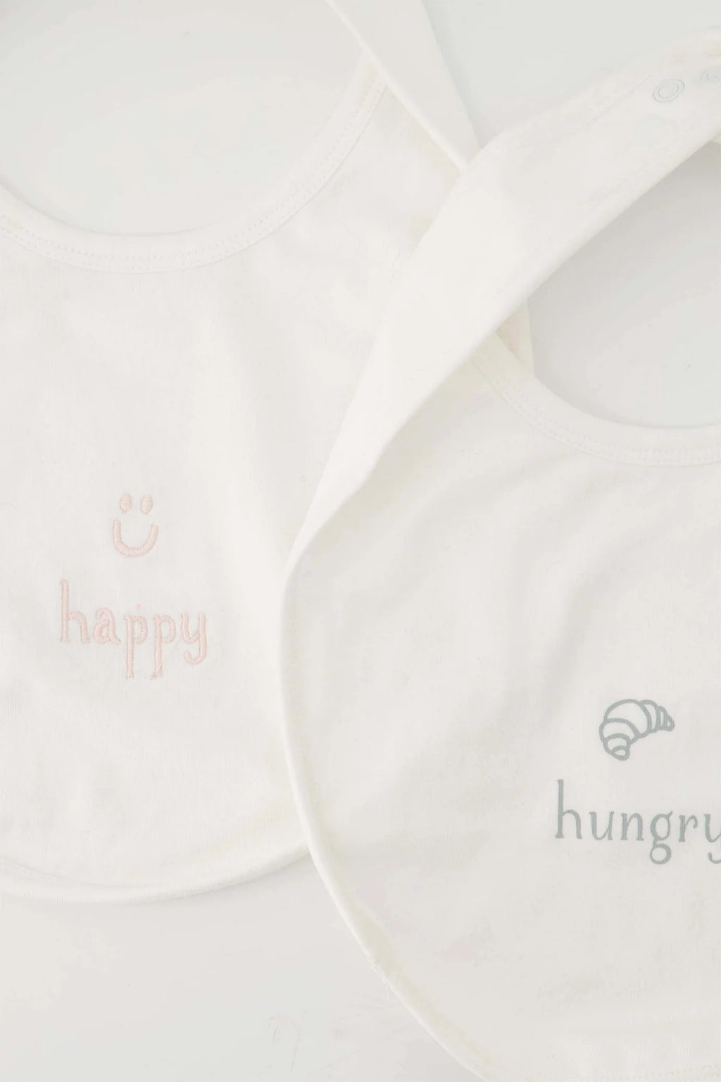 Deze Zusss slabbetjes wit zijn perfect voor kleine smulpapen en eerste hapjes. De set van 2 slabbetjes heeft zachte, comfortabele stof die fijn aanvoelt. Met een lieve “happy” en “hungry” opdruk in zachte pastelkleuren, zijn ze een natuurlijk leuke toevoeging aan de babyuitzet. De subtiele witkleur maakt ze makkelijk te combineren en ze sluiten zacht aan de nek. Deze slabbetjes zijn ideaal tijdens voedermomenten en helpen kleding schoon te houden. De subtiele prints geven net dat beetje extra charme zonder teveel poespas.