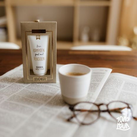 Na al die jaren hard werken is het tijd om te relaxen, en dat begint met de Douchegel pensioen van 100%LEUK! Deze verzorgende en vegan douchegel is hét perfecte cadeau om iemand te feliciteren met zijn of haar pensioen. Vrolijk, fris en 100%LEUK!