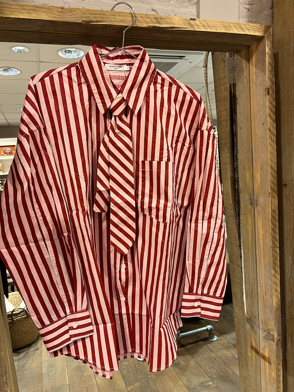 Wat een super leuke gestreepte blouse is deze! Incl. stropdas die er los bij zit. Een overhemd waar je het hele jaar plezier van zult hebben. Zomer en winter, voorjaar en herfst.
