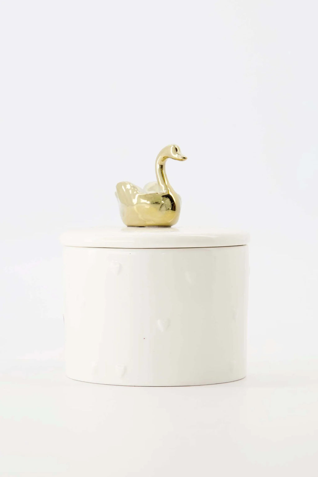 De Zusss geurkaars keramiek brengt sfeer en warmte in huis. Deze witte kaars met een deksel en een gouden zwaan is een subtiel statement. De keramieken pot heeft een fijne structuur met kleine hartjes, wat de kaars een speels en elegant uiterlijk geeft. Perfect als sfeermaker op tafel of in de woonkamer, waar deze geurkaars keramiek met deksel warmte en gezelligheid toevoegt aan je interieur.