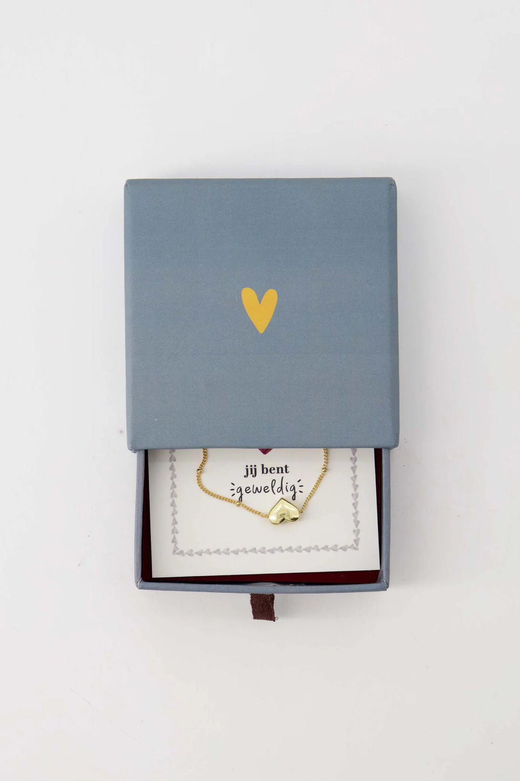 Deze Zusss armband met hartje in leuk schuifdoosje is een subtiel en warm accessoire. Het armbandje heeft een fijn goudkleurig kettinkje met een klein, glanzend hartje, verpakt in een schattig grijsblauw doosje. De Zusss armband met hartje geeft een persoonlijke touch en is perfect om cadeau te geven of jezelf mee te verrassen. Dankzij het doosje blijft het armbandje mooi beschermd en klaar voor elk moment. Dit sierraad past mooi in de collectie modeaccessoires.