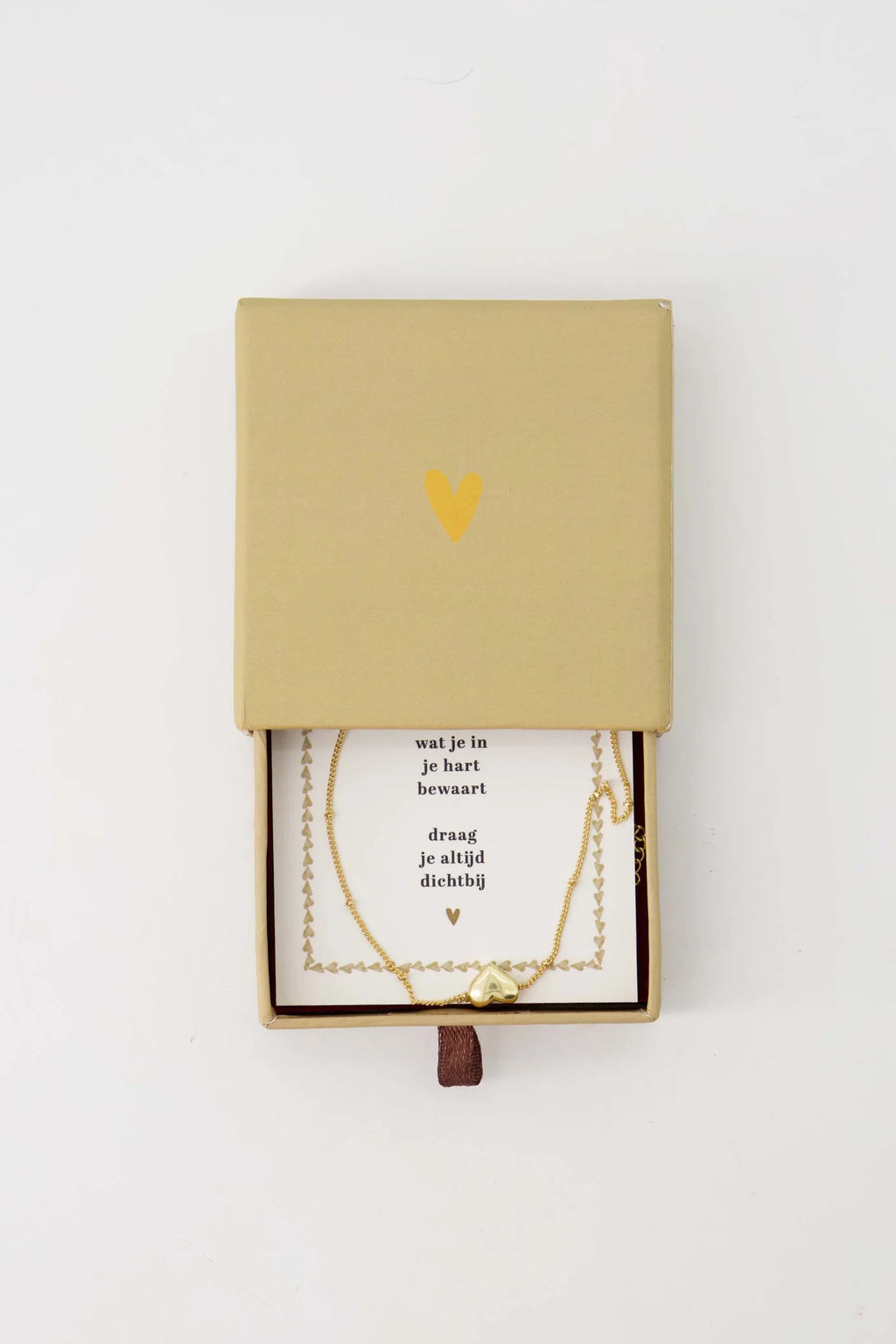 De Zusss ketting hartje is een subtiel en warm accessoire dat perfect past bij elke stijl. Deze ketting hartje is afgewerkt in een zachte zandkleur en wordt geleverd in een charmant schuifdoosje, dat het dragen van de ketting extra bijzonder maakt. De ketting hartje bij Zusss staat symbool voor liefde en herinnering, een sieraad om dicht bij het hart te dragen. Deze ketting hartje maakt elk moment iets mooier, voor jezelf of om cadeau te doen.