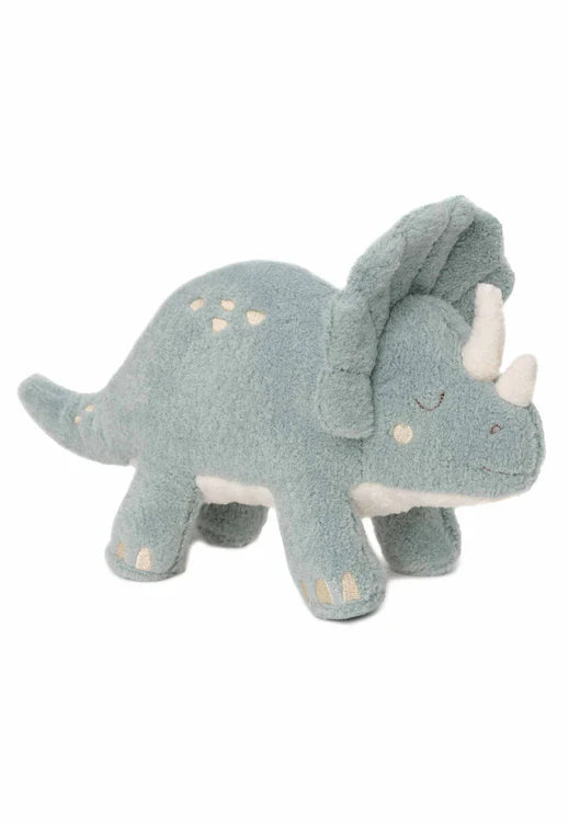 Wauw, welke stoere avonturier moet deze Dino echt bij zijn/haar collectie toevoegen? Deze Dino komt in een prachtig grijs blauw kleurtje met Ivory kleurige vlekjes en is heerlijk aaibaar. Je mini zal zich vast ook urenlang vermaken met deze leuke knuffel, want de oortjes zijn voorzien van een krinkel geluid! De knuffel heeft een extra tag mét palmboompje en dat maakt de knuffel natuurlijk nog interessanter. Maak thuis je eigen jurassic park met deze veel te lieve dino!