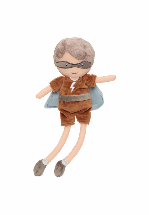 Ken jij superheld Dave al? De shining star van onze poppenserie. Hij is dapper, stoer en maakt graag nieuwe vriendjes. Met een echt superheldencape, hoge sportsokken en oogmasker kan hij samen met jouw kleintjes de mooiste avonturen beleven. Op welk avontuur ga jij met Dave?