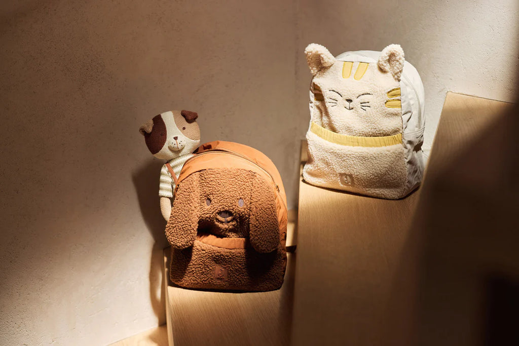 Dit schattige rugtasje Charlie Cat heeft een sand kleurtje met uitstekende oren en Queen Bee kleurige accenten. De tas heeft een rits aan de voorkant en een zachte teddy stof vooraan, met een stevige polyester mix aan de zijkanten. Binnenin zit een steekvak met velcro voor kleine spulletjes. De gespjes zorgen ervoor dat de tas goed blijft zitten. Ook de achterkant is van zachte teddy, ideaal voor naar de opvang of andere avonturen!