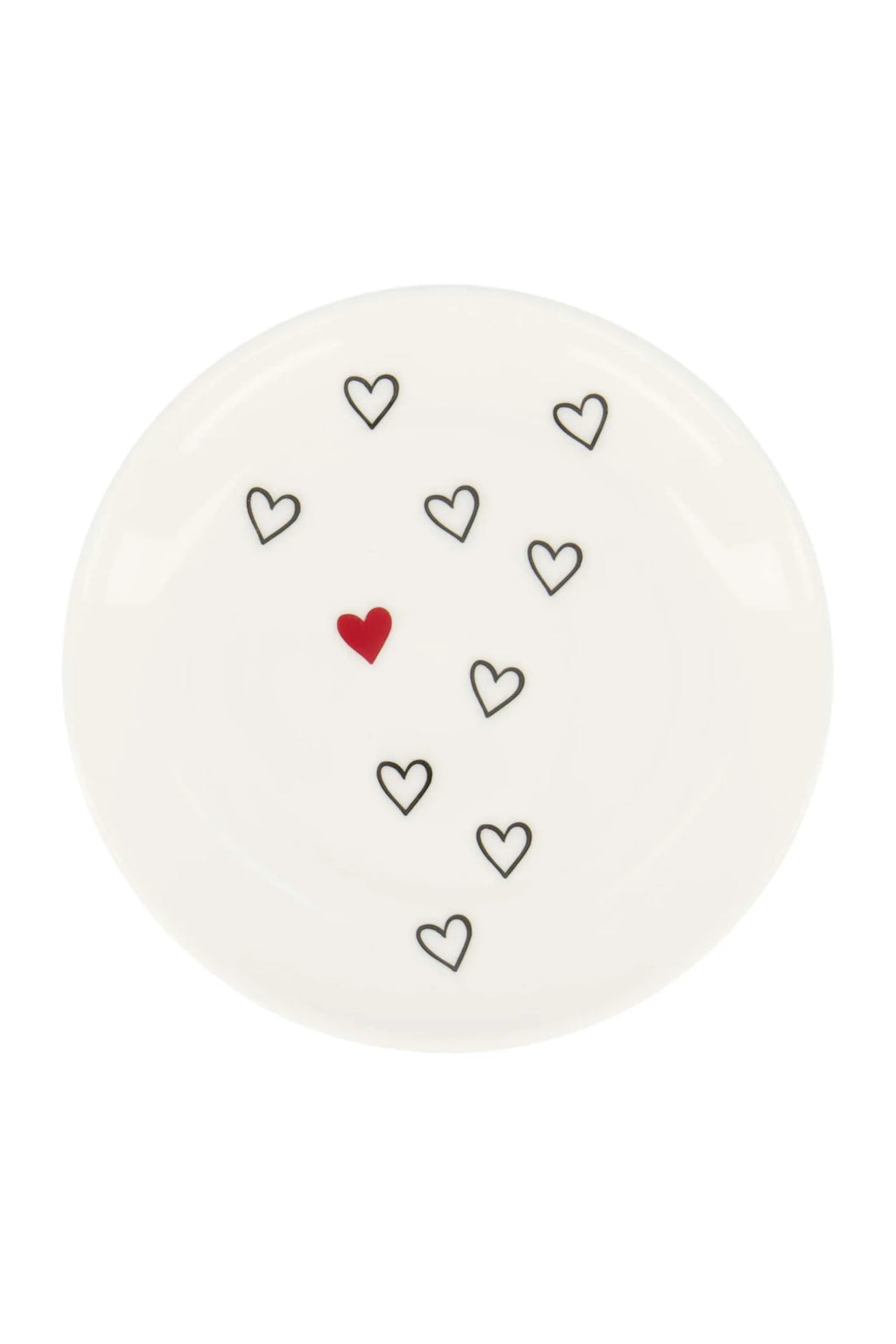 Het Zusss schaaltje hartjes is een subtiel en stijlvol accessoire voor in de keuken. Dit wit schaaltje met speelse zwartomlijnde hartjes en een opvallend portkleurig hartje geeft je tafel nét dat beetje extra. Perfect om kleine hapjes of lekkers op te presenteren. Dit schaaltje past prachtig in de collectie keukengerei van Zusss en voegt een warme, persoonlijke touch toe aan je dagelijkse momenten.