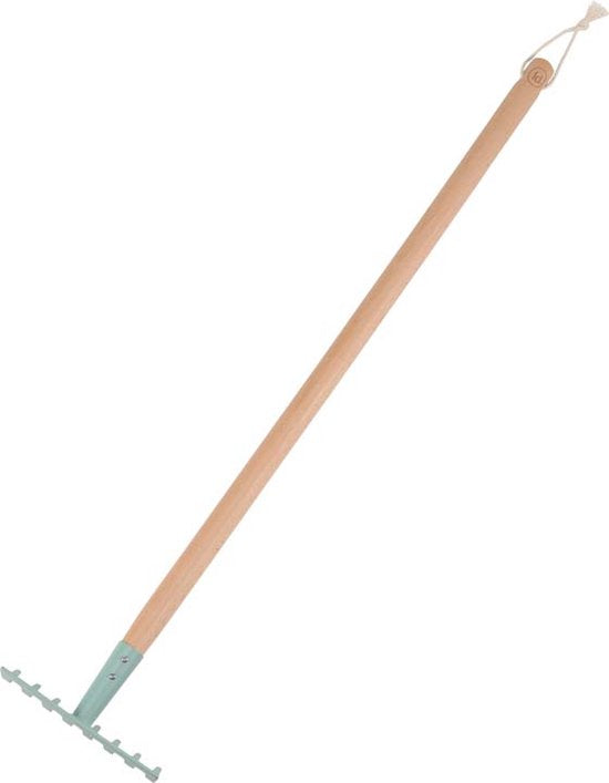 Deze hark uit de tuingereedschapscollectie van Little Dutch is perfect voor kleine groene vingers. De hark is gemaakt van hout en metaal, met een mooie natuurlijke groene kleur die prachtig past in elke tuin. Voor extra gemak is er een stevig koordje bevestigd, zodat je de hark gemakkelijk kunt ophangen na een dagje tuinieren. Ideaal voor jonge tuiniers die hun eigen hoekje in de tuin willen verzorgen!