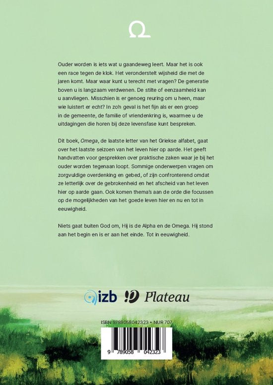Ouder worden is iets wat u gaandeweg leert. Maar het is ook een race tegen de klok. Het veronderstelt wijsheid die met de jaren komt. Maar waar kunt u terecht met vragen? De generatie boven u is langzaam verdwenen. De stilte of eenzaamheid kan u aanvliegen. Misschien is er genoeg reuring om u heen, maar wie luistert er echt? In zo’n geval is het fijn als er een groep in de gemeente, de familie of vriendenkring is, waarmee u de uitdagingen die horen bij deze levensfase kunt bespreken. Dit boek, 'Omega', de laatste letter van het Griekse alfabet, gaat over het laatste seizoen van het leven hier op aarde. Het geeft handvatten voor gesprekken over praktische zaken waar je bij het ouder worden tegenaan loopt. Sommige onderwerpen vragen om zorgvuldige overdenking en gebed, of zijn confronterend omdat ze letterlijk over de gebrokenheid en het afscheid van het leven hier op aarde gaan. Ook komen thema’s aan de orde die focussen op de mogelijkheden van het goede leven hier en nu en tot in eeuwigheid. Niets gaat buiten God om, Hij is de Alpha en de Omega. Hij stond aan het begin en is er aan het einde. Tot in eeuwigheid.