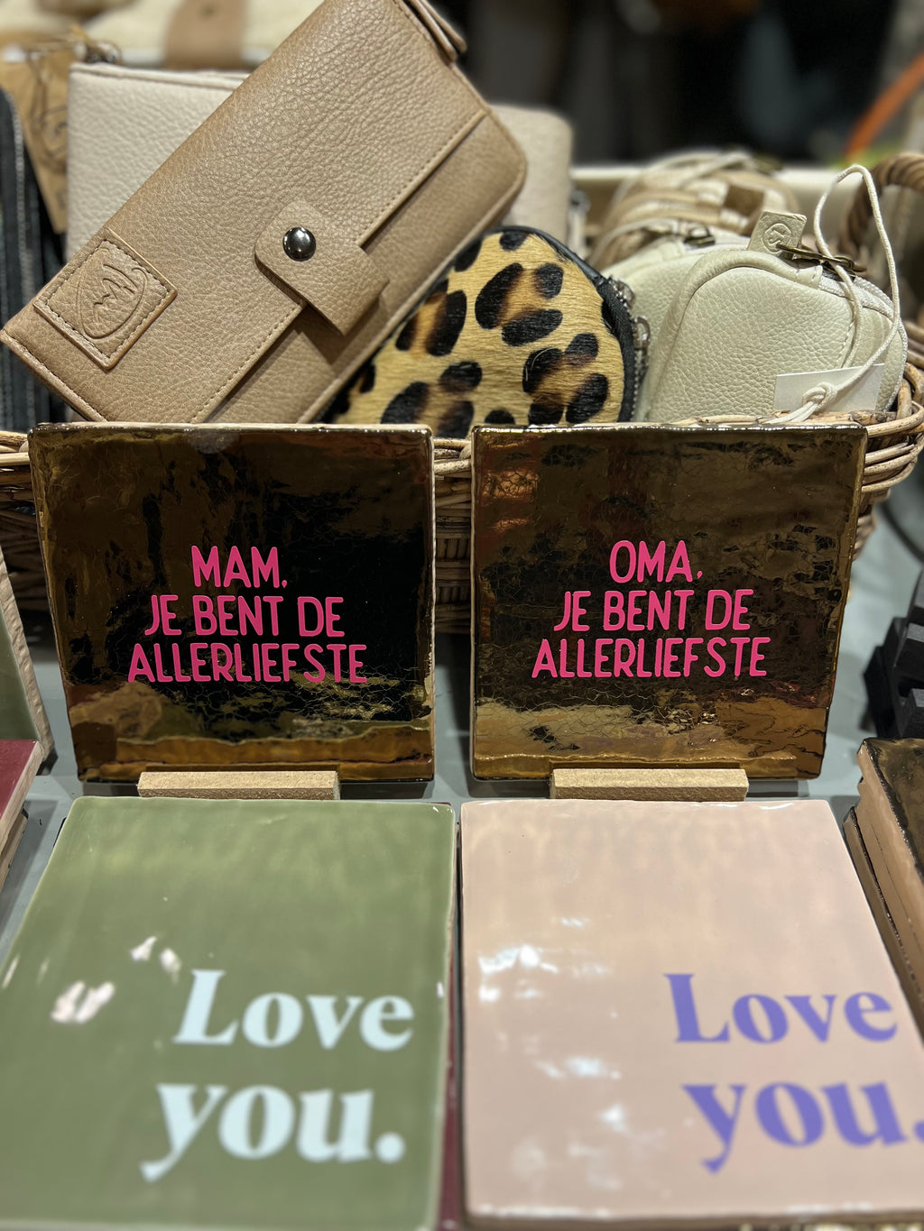 Tegeltje - Oma, je bent de allerliefste - goud met roze