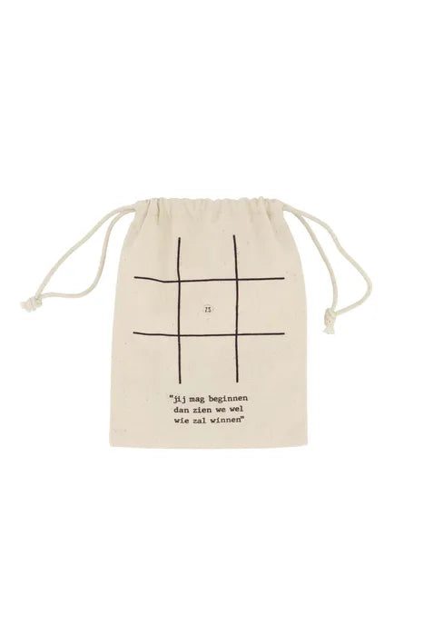 Dit houten spelletje van Zusss is zooo leuk! Hiermee kun je boter kaas en eieren spelen met houten hartjes en kruisjes. Het spelletje zit in een ook al zo leuk katoenen zakje. Op het zakje staat een speelveld en de tekst: "Jij mag beginnen dan zien we wel wie zal winnen". Het spelletje heeft een formaat van 16x12cm. Een fijn formaatje om mee te nemen onderweg of met een dagje uit. Tip: ook erg leuk als kadootje!