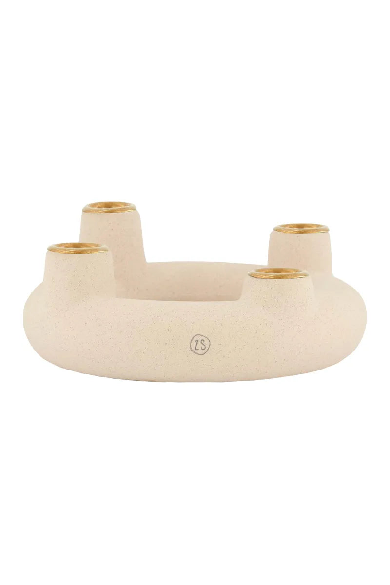 Zusss - Keramieken kandelaar voor 4 dinerkaarsen rond - Zand