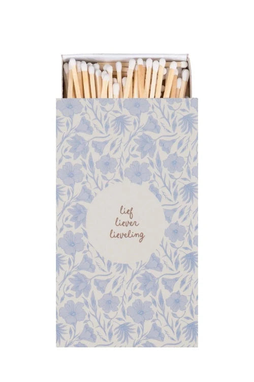 Dit doosje lucifers van Zusss mag zeker gezien worden! Geef 'm een mooi plekje in je interieur. Of geef 'm als kadootje aan een ander! De lucifers zijn verpakt in een mooi doosje met een wit/blauwe bloemen print. Op de voorkant van het doosje staat: lief, liever, lieveling. Tip: neem ook eens een kijkje bij de Zusss kaarsenhouders.